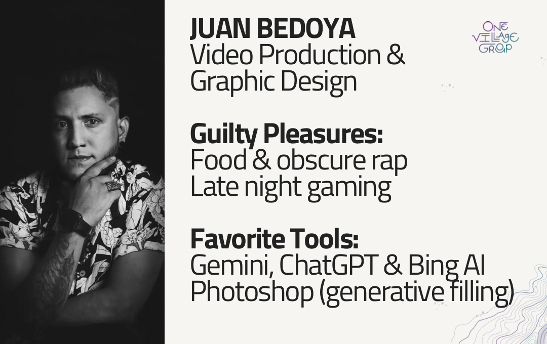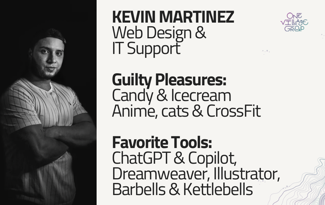 Our nonprofit, One Village Group, has additional staff in Colombia (South America), who manage our web design and graphic design projects.